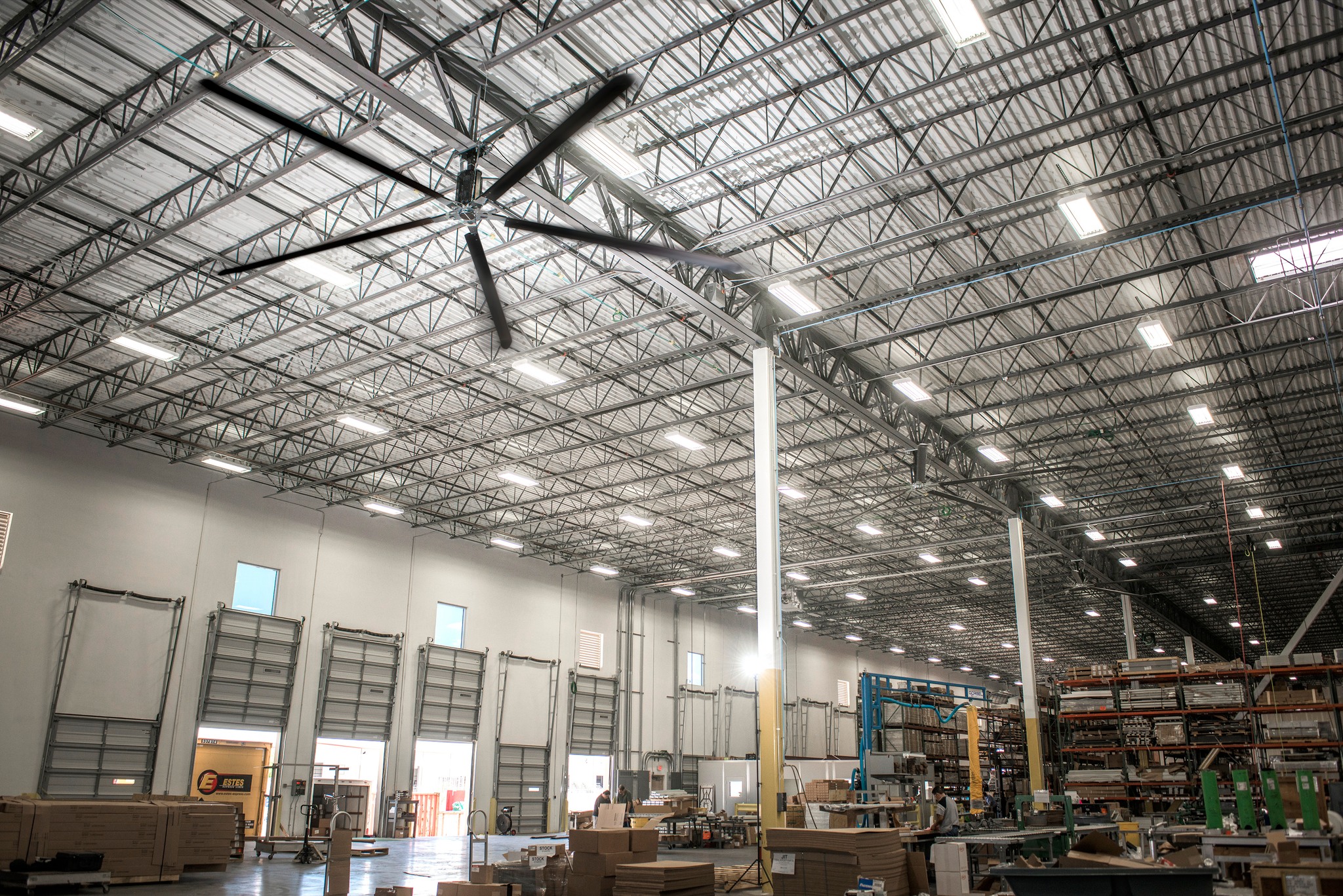 These fans gently circulate air from the ceiling to the floor, breaking up stratification and distributing heated air downward in the winter. This improves worker comfort without creating the harsh drafts associated with standard high-speed fans.