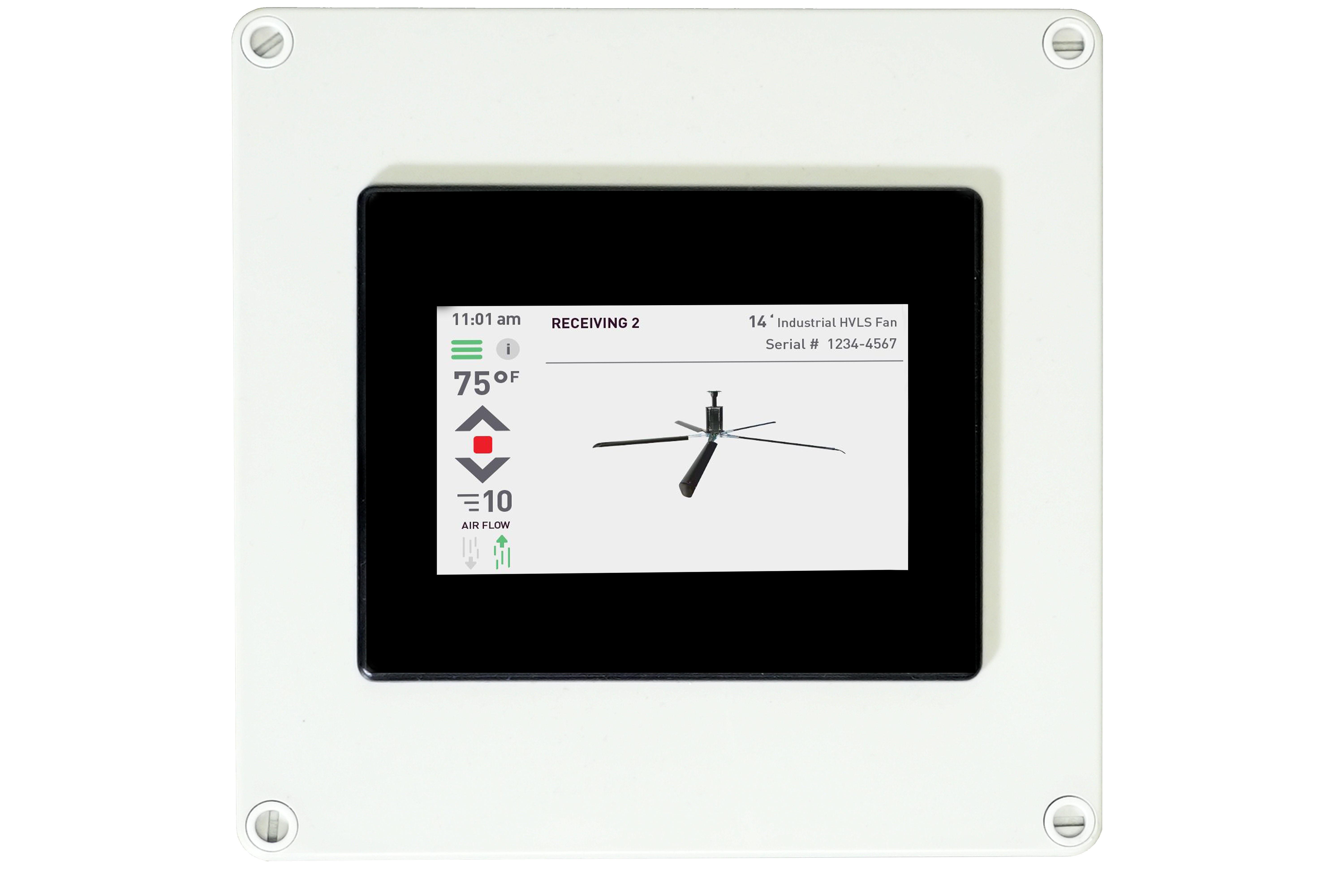 The iFan 7.0 is a networked touchscreen control panel designed for managing up to 24 HVLS (High Volume, Low Speed) fans across 4 groups in commercial and industrial environments. It integrates advanced building management capabilities with user-friendly controls, supporting temperature-based automation and BMS connectivity