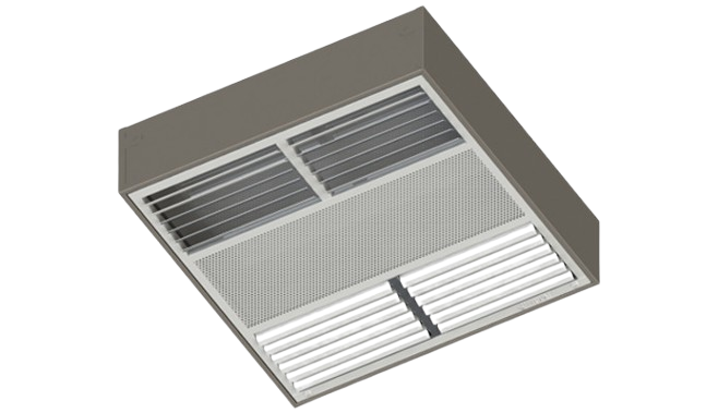 RADIAN-series diffusers generally feature slim-profile designs for modern ceilings, with 2-way airflow patterns for balanced air distribution.