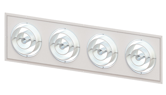 Jet-Flo® diffusers typically feature high-velocity airflow for large spaces, with AGJ models offering adjustable patterns for targeted comfort.